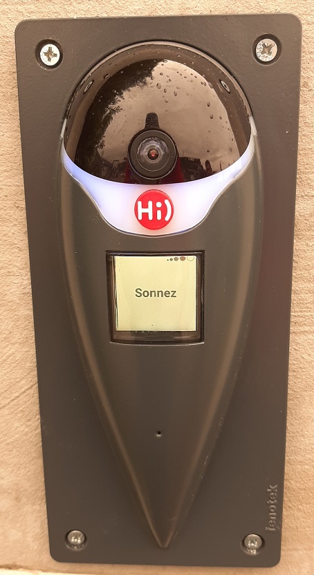L’interphone vidéo fonctionne exactement pareil, sauf que la platine de rue possède une caméra et que votre poste intérieur possède un écran. Vous pouvez ainsi visualiser la personne qui sonne.